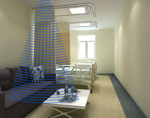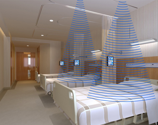 系統核心部件集成了先進的定向聲技術,讓聲音只在特定區域內傳播,有效解決養老院特殊的聲環境需求。該技術清聽聲學專有專利,具有排它性。